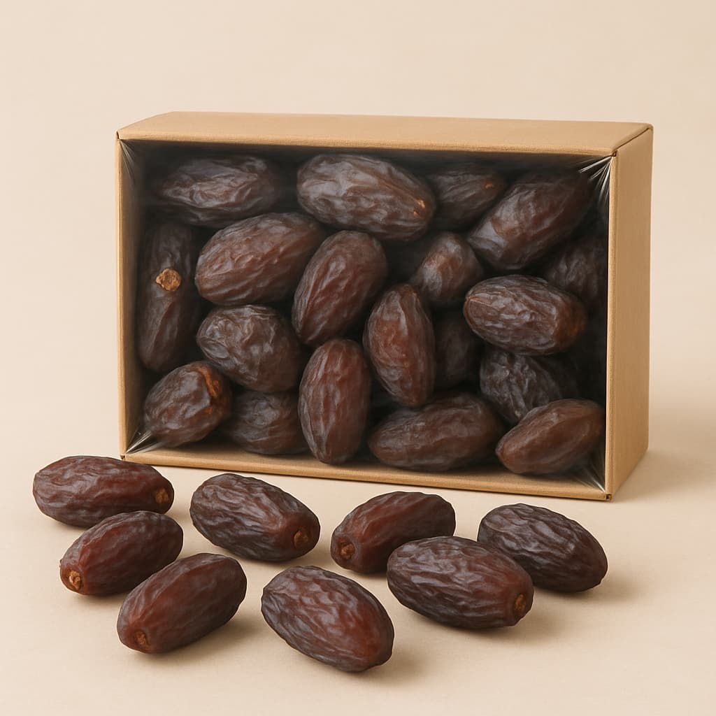 Weiche, saftige Medjoul-Datteln in Premium-Qualität. Unsere Medjoul-Datteln aus Israel überzeugen durch ihre natürliche Süße und ihr karamellartiges Aroma. Sie sind 100% naturbelassen, ohne Zusatzstoffe, und eine ideale Quelle für natürliche Energie – perfekt als Snack oder zum Süßen von Speisen.